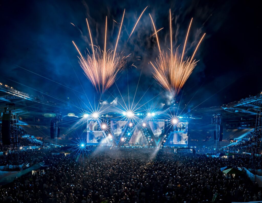 Lighting Designer Giovanni Pinna developed a dynamic and expressive lighting concept using a combination of 145 Claypaky Ultimo Hybrid units, 72 Volero Cube fixtures, and 36 Arolla Aqua luminaires. “The lighting design included four fixture types – wash, beam, spot, and effects,” explains Pinna, “giving us the flexibility to shape the show’s energy and dynamics across different songs and visual moments.”